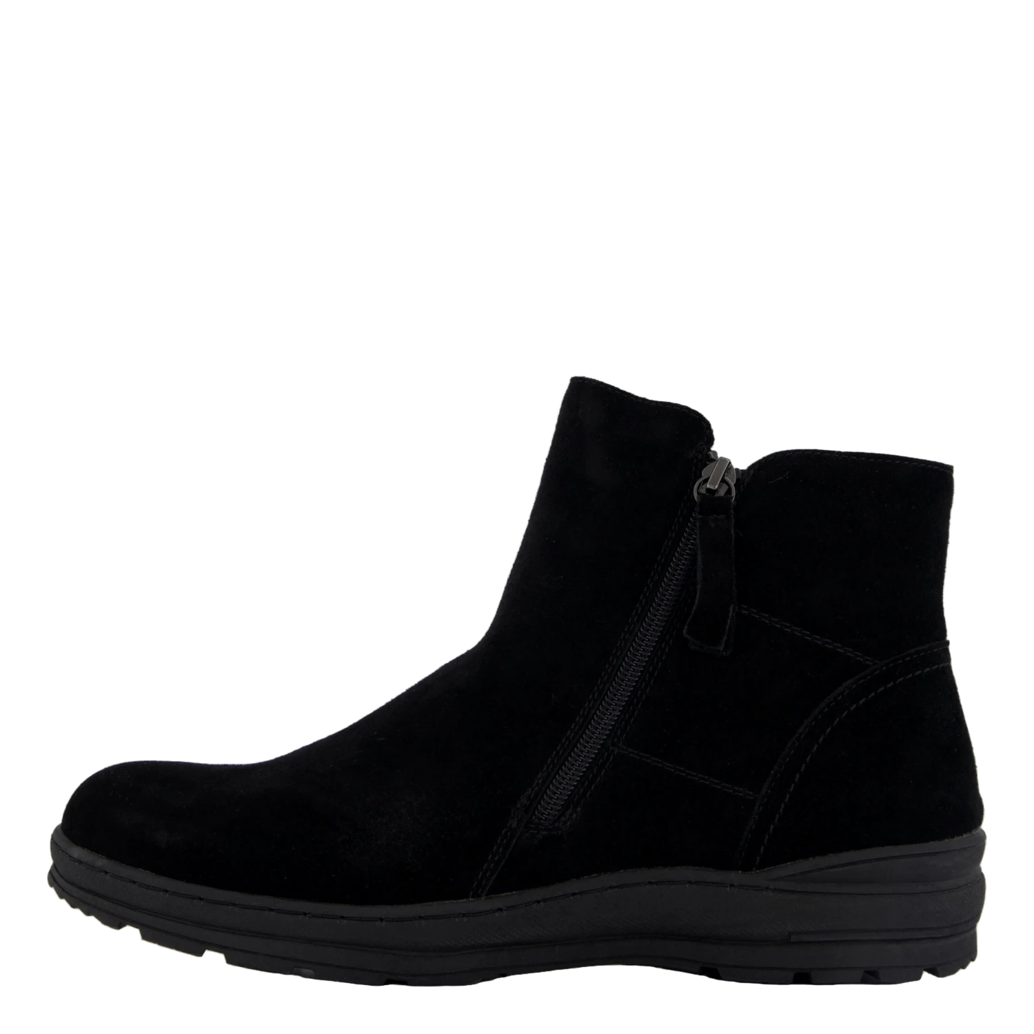 Varmfodrad känga med sula med mycket gummi och bra grepp. Gosigt foder även i innersulan. Lös innersula. Dubbla dragkedjor för enklare på/av. Vattenavvisande förimpregnerad mocka.