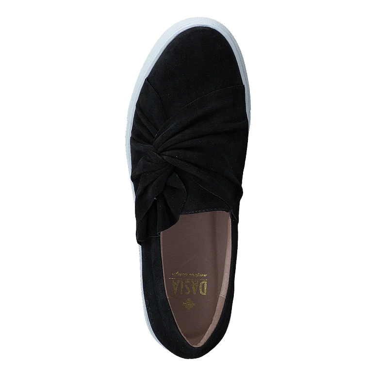 Daylily Slip-in Bow Black från Dasia är en slip-on i mjukt, svart mocka.