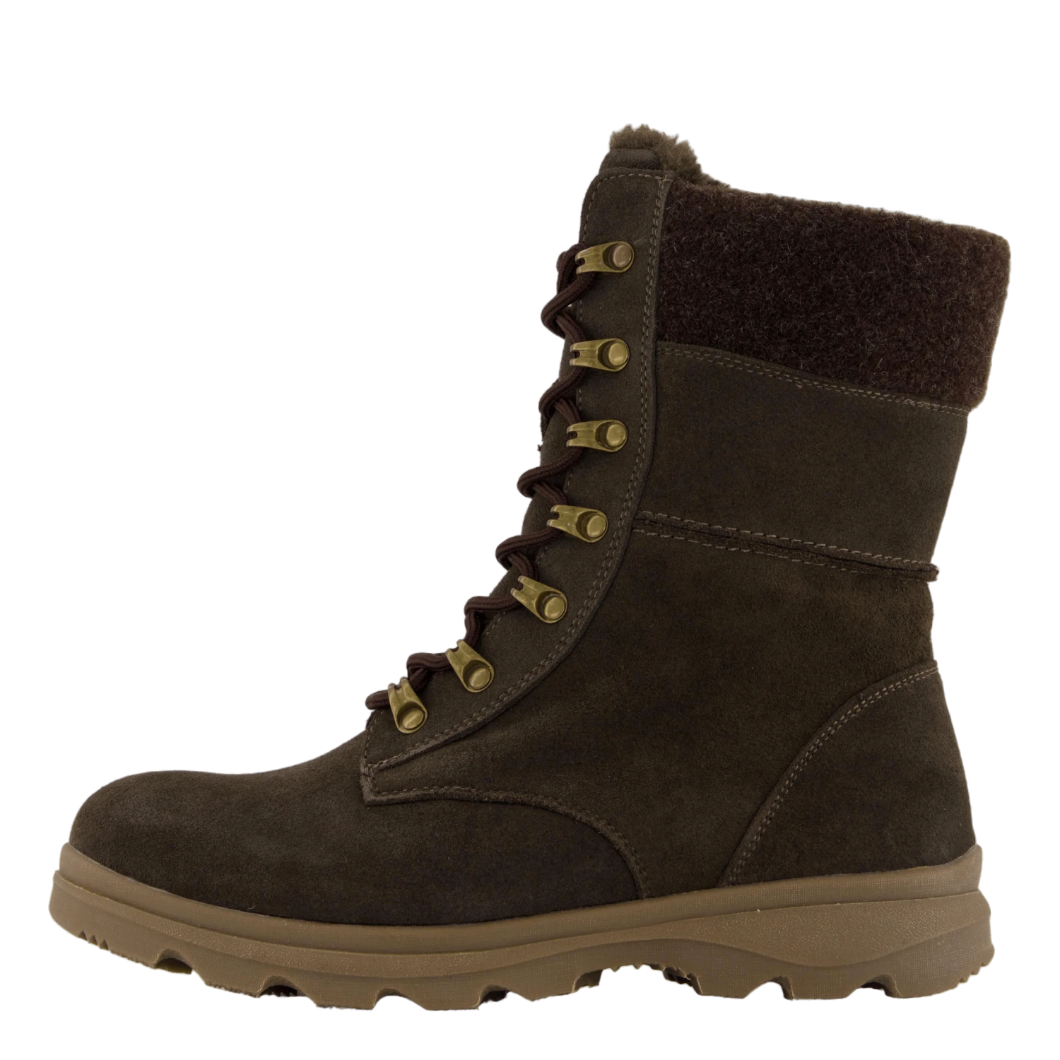 Varmfodrad känga med sula med mycket gummi och bra grepp. Gosigt foder även i innersulan. Lös innersula. Dragkedja. Högt skaft. Vattenavvisande förimpregnerad mocka. Justerbart skaft.