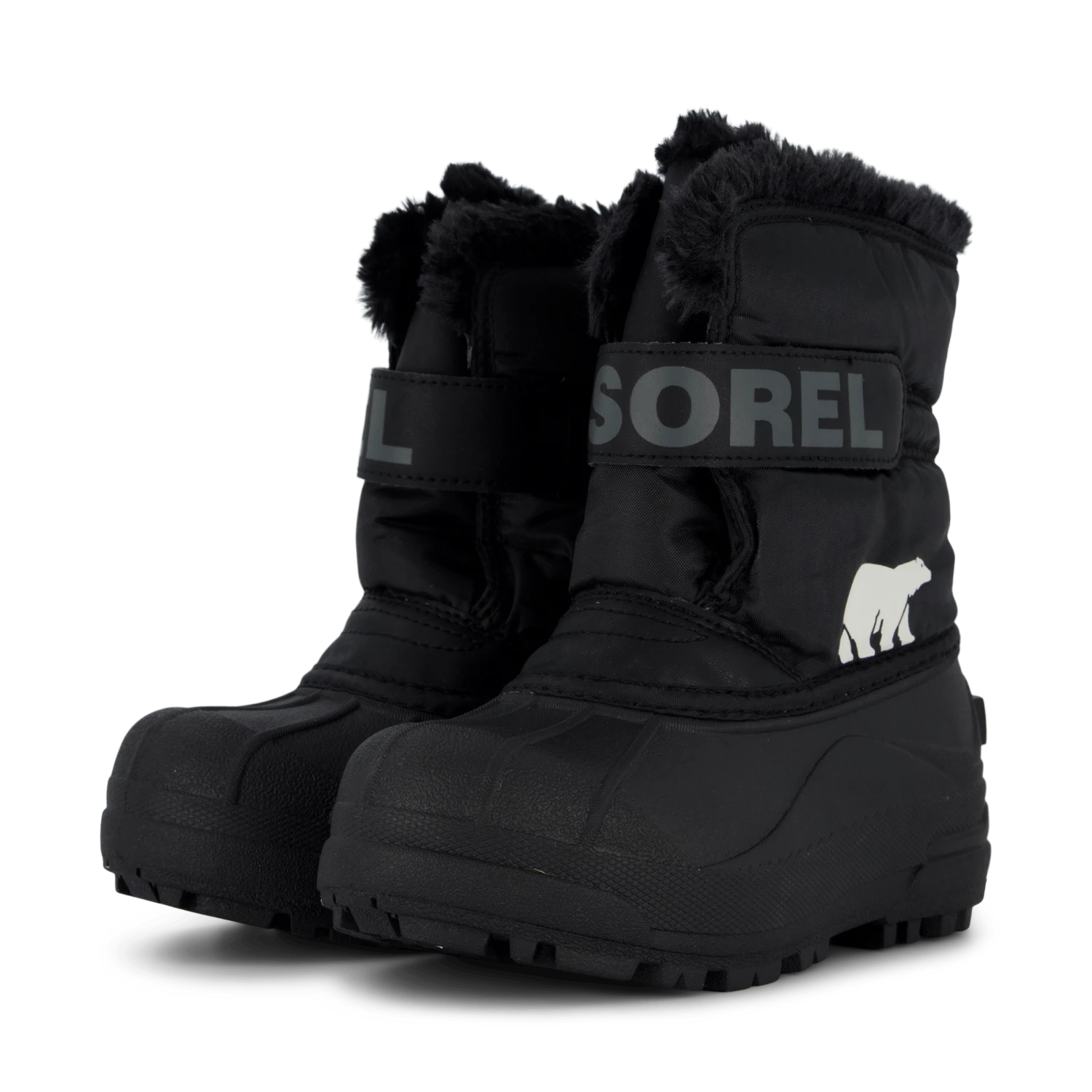 Vi presenterar Sorel Children’s Snow Commander-stövlar i elegant svart och kol. Dessa tuffa vinterstövlar är redo att erövra snöiga äventyr samtidigt som de håller små fötter varma och torra. Den vattentäta nylonöverdelen är förstärkt med slitstarka syntetöverdrag för extra skydd mot väder och vind. En plysch krage i fuskpäls ger både stil och extra mysighet.