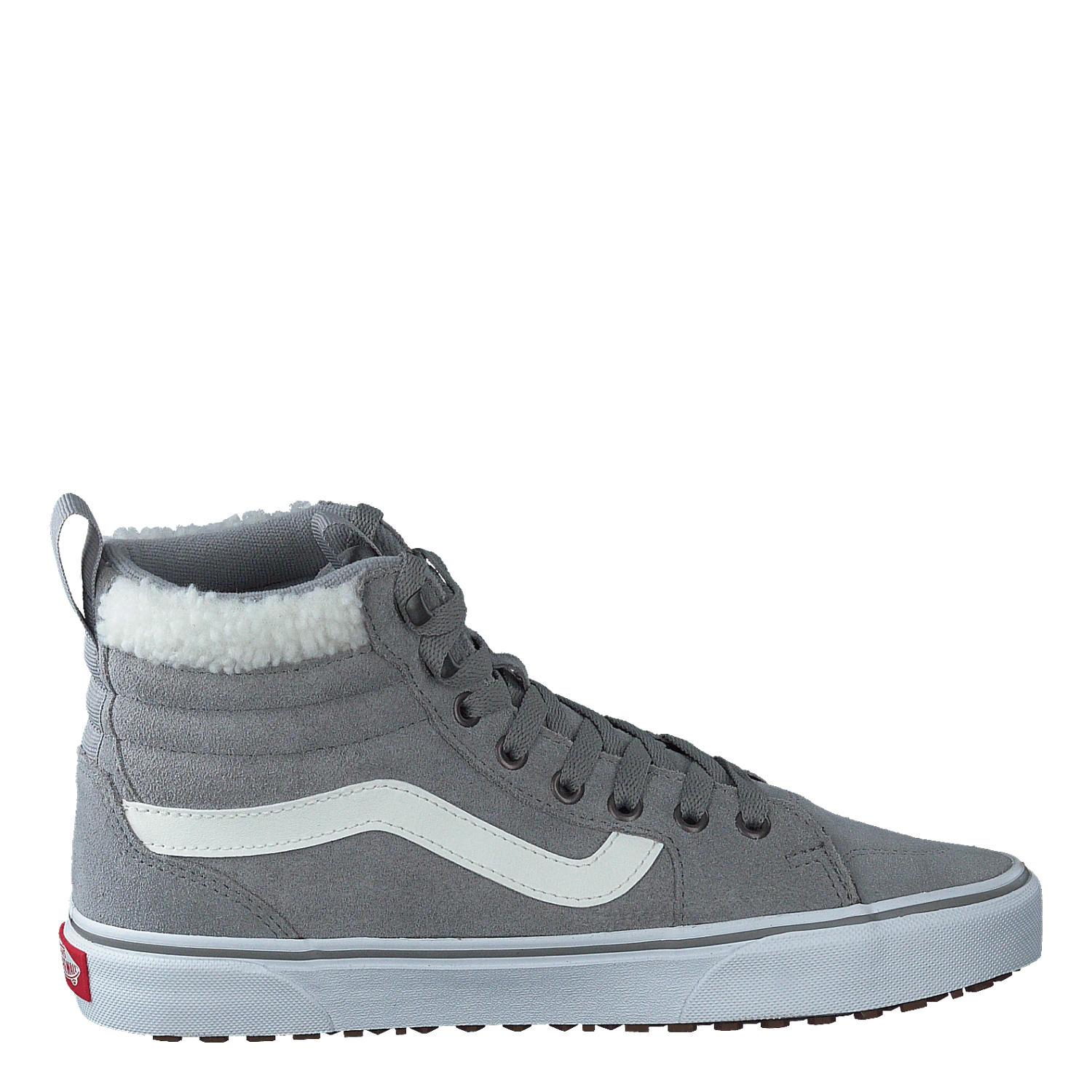 Denna WM Filmore hi sneaker från Vans berättar allt du vill veta om den. Den har en tidlös ovandel i läder, vadderad fotbädd, tjock gummisula och snören. Dess grå färg kompletteras med en vit logotyplapp och en snörning framtill.